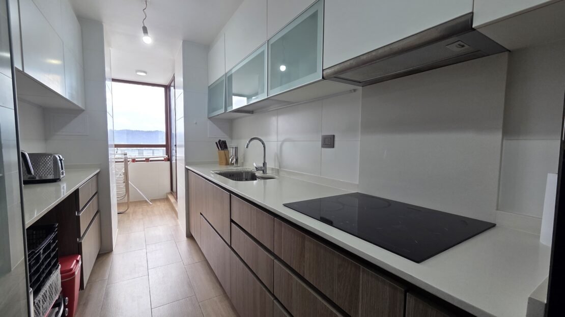 - Cocina completamente equipada: horno eléctrico, encimera, campana y microondas con horno
