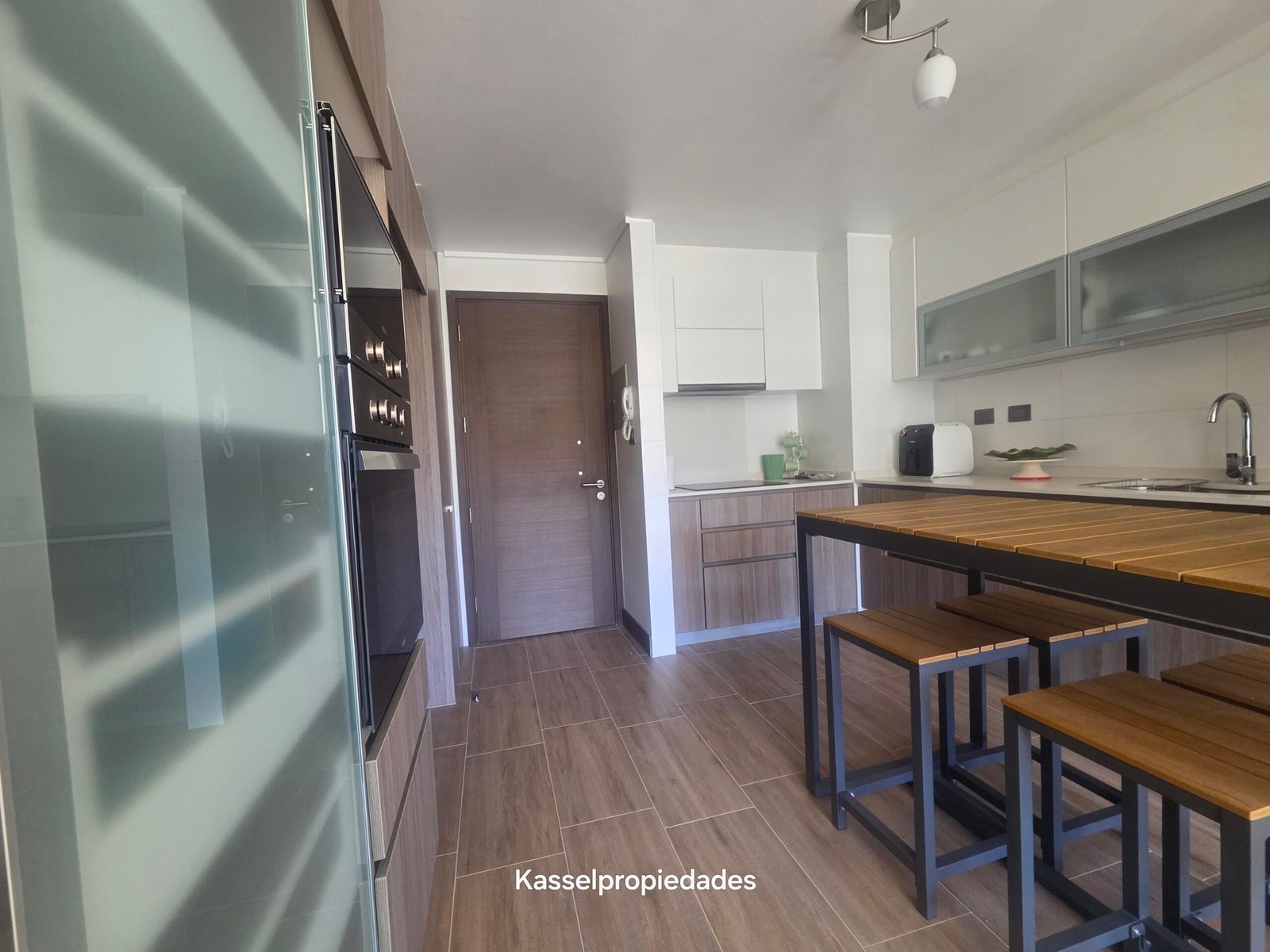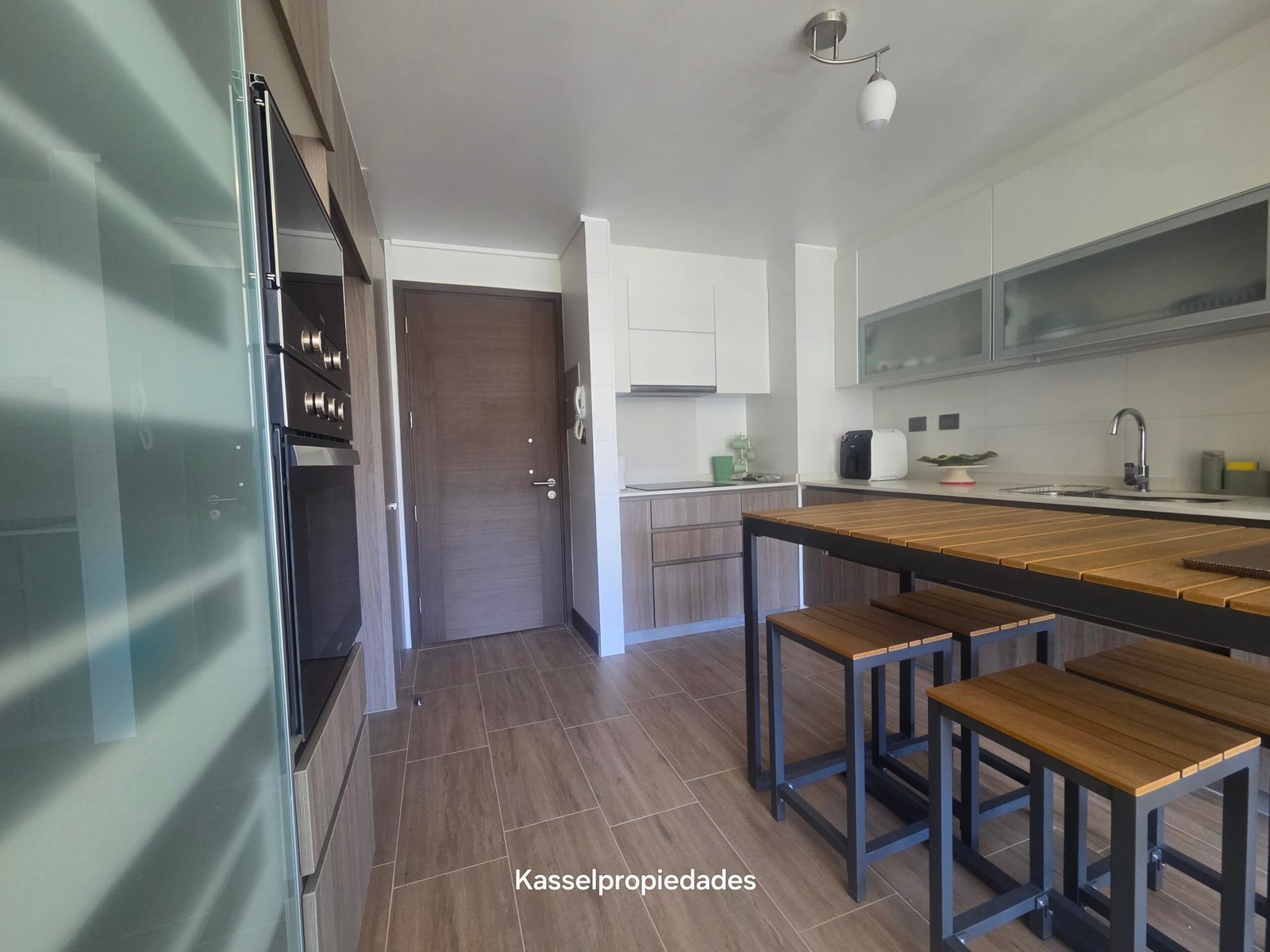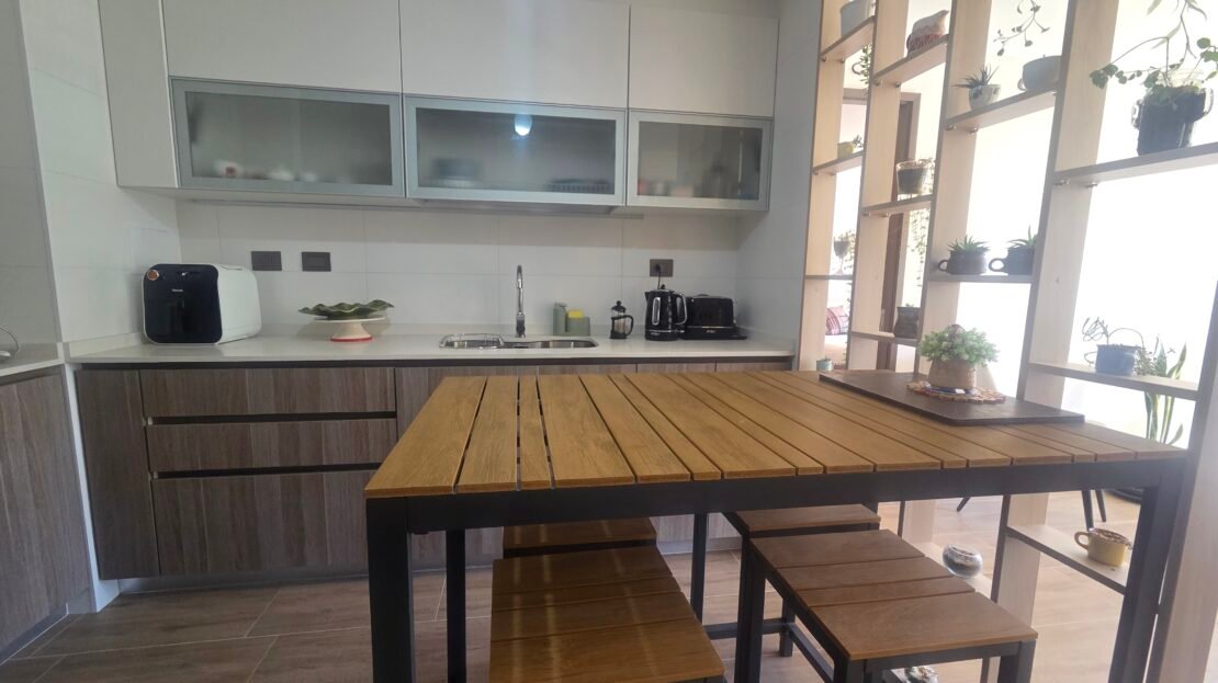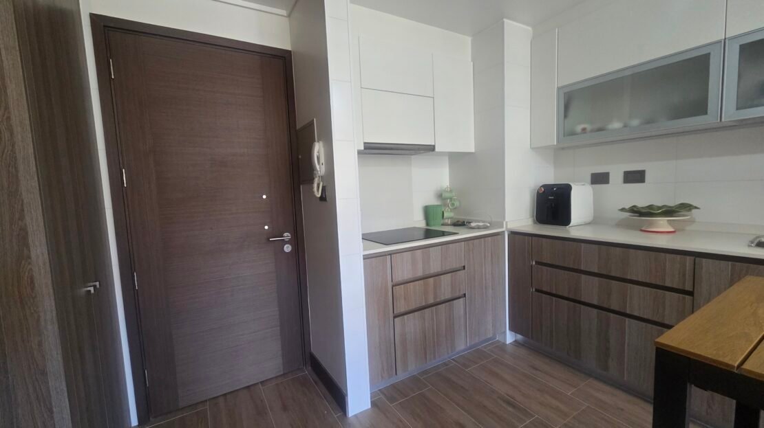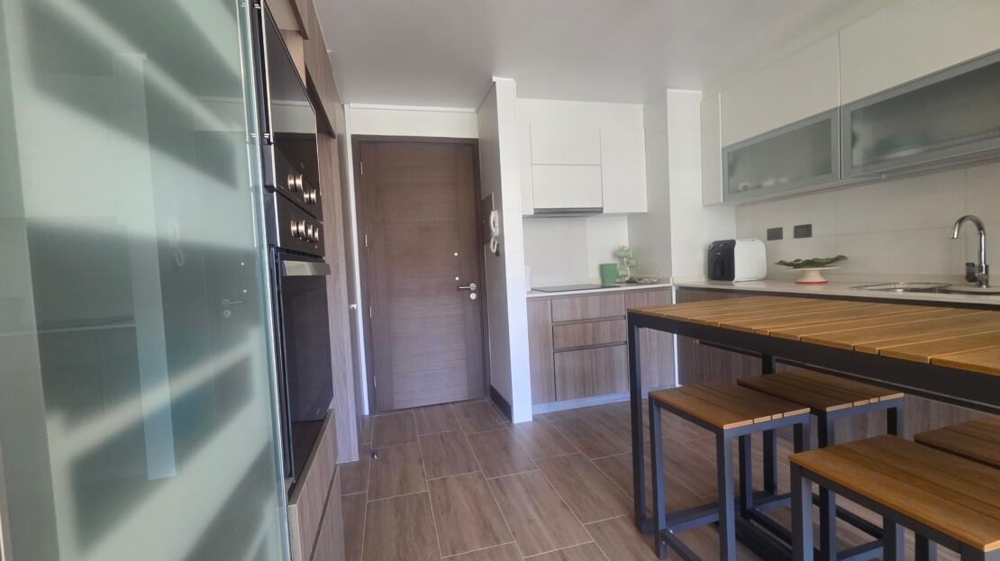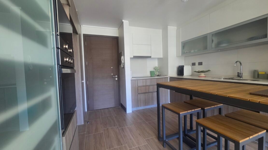 • Cocina completamente amoblada, incluye horno, microondas y encimera eléctrica.