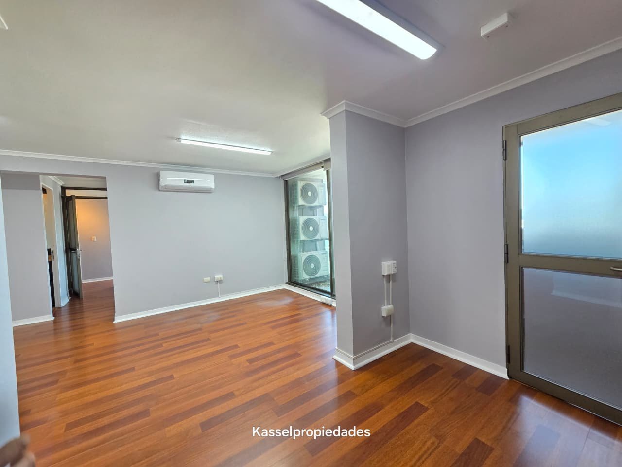 Las oficinas cuentan con divisiones de aluminio con vidrio, lo que permite una buena iluminación natural y una distribución funcional para equipos de trabajo.